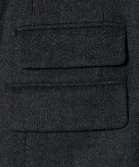 大きめの肩バランスながら横からみたシルエットは薄くみえ、ポケット位置をやや低めに設定。