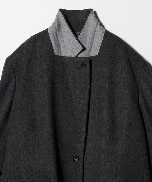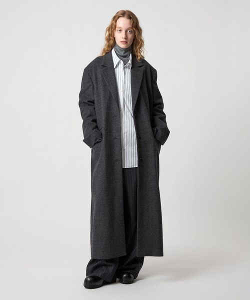 上質な素材を使用した、やわらかさと軽いタッチの毛織生地で仕立てたロングコート。