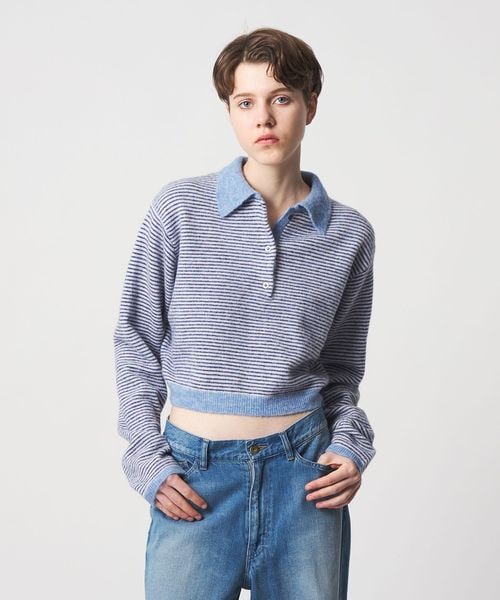 アルパカブレンドのふんわりとした風合いがウォーミーなポロニットプルオーバー。