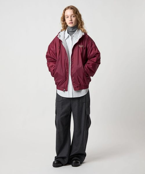 <6(ROKU)>フーデッド ナイロン ジャケット WINE