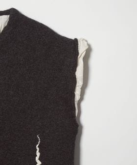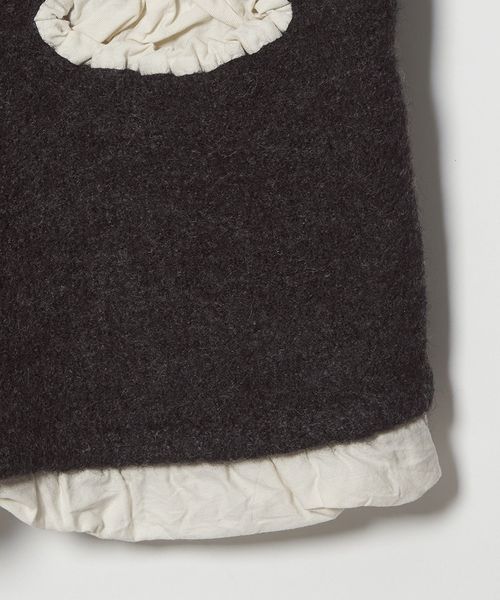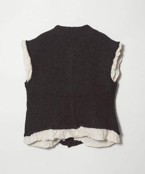 ポケットから装飾が飛び出したような、遊び心のあるデザインのニットベスト。