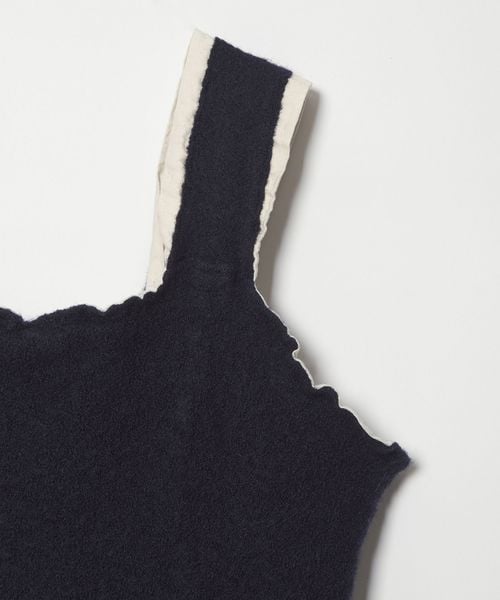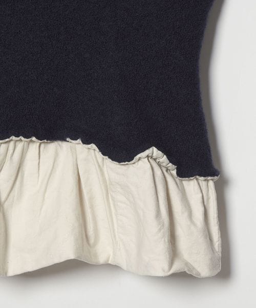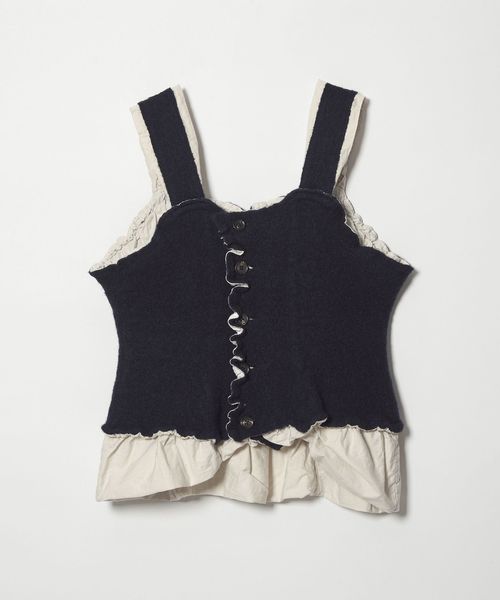 ニットにコットン生地のギャザー感がポイントのニットキャミソール。