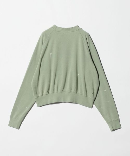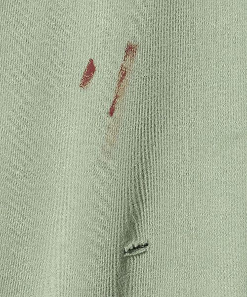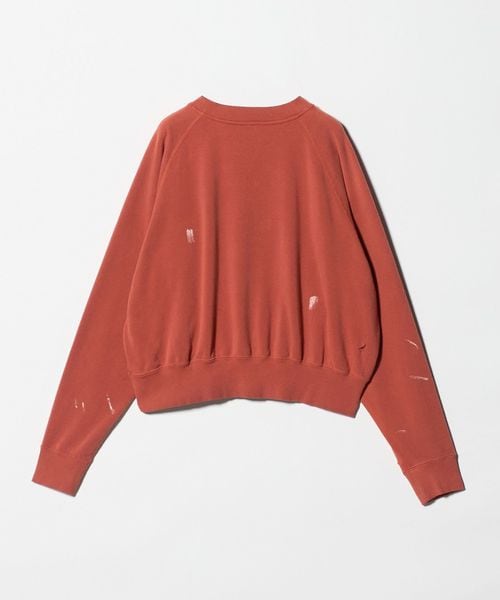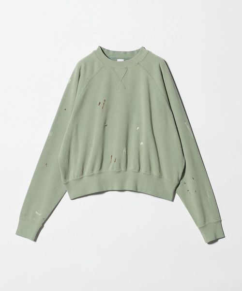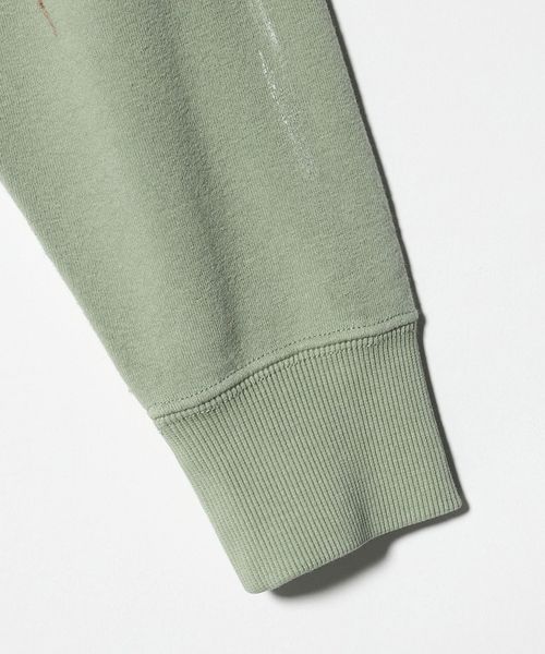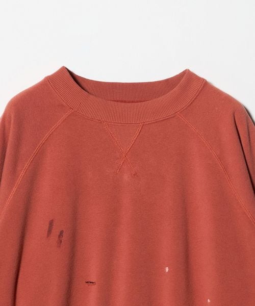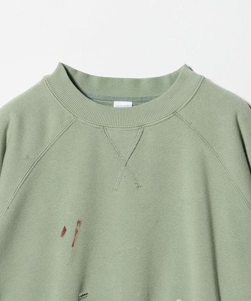 ヴィンテージから着想を得た、ダメージとペイント加工を施し、馴染んだような風合いや独特の味わいを表現したスウェットプルオーバーを別注しました。