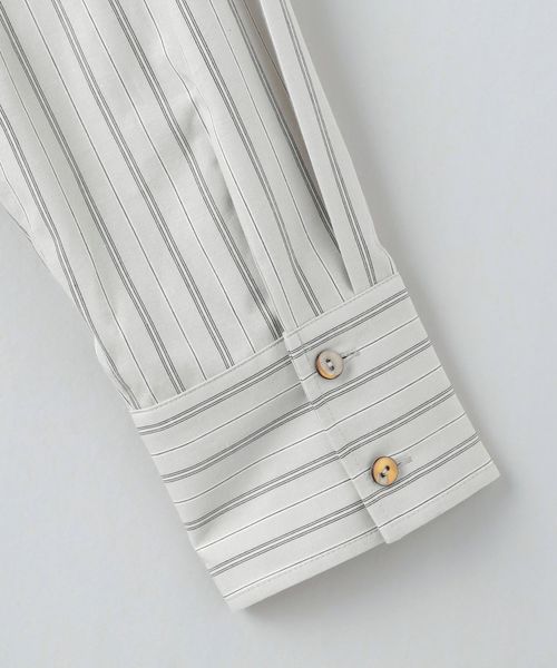 抜け感とモードな雰囲気が共存する、マニッシュなややゆったりとしたシルエットのシャツ。