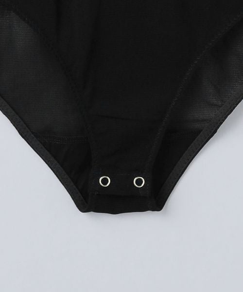 シアーな透け感のあるチュール素材が軽やかな雰囲気に仕上げてくれるボディスーツデザインのトップス。