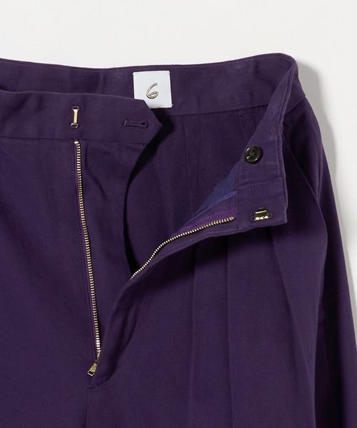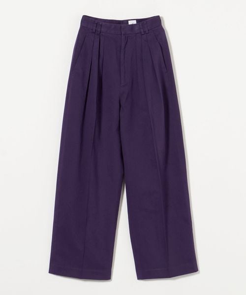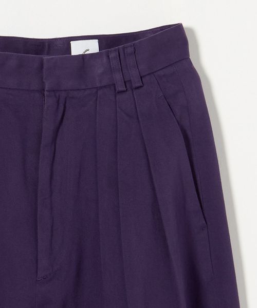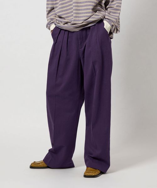 やわらかさにも、独特のコシを出したコットンレーヨン混の生地で仕立てたビッグシルエットのタックパンツ。