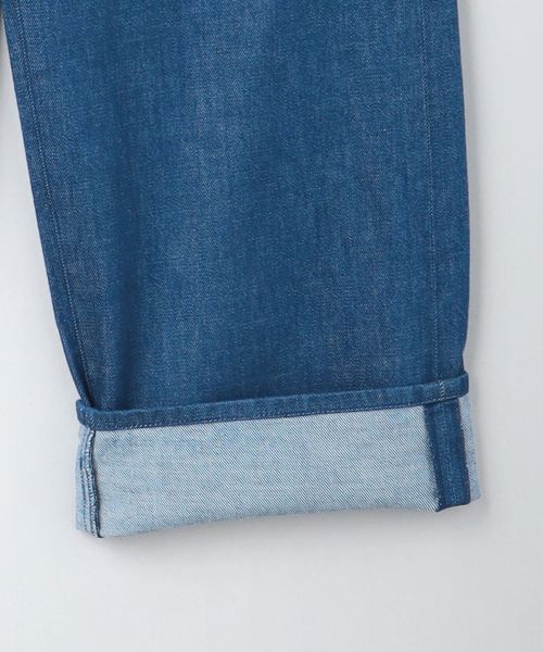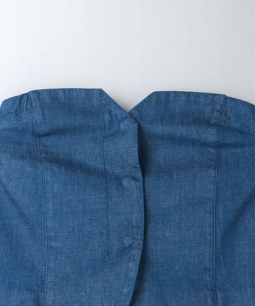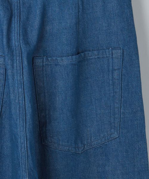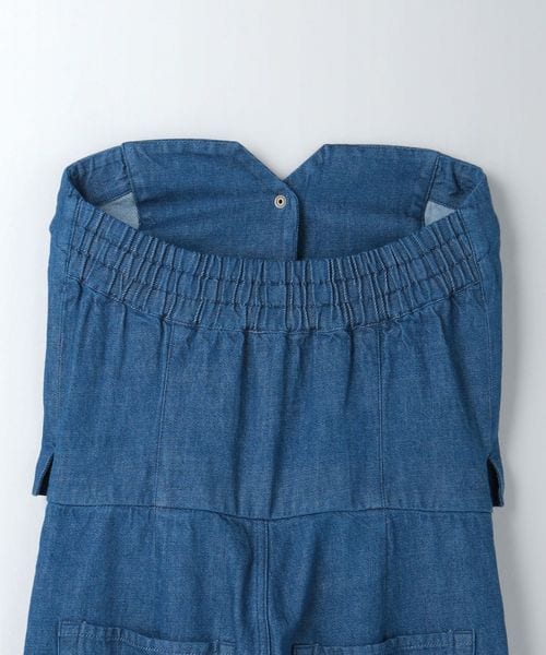 上下が分かれているようにみえるデザインのデニム オールインワン。