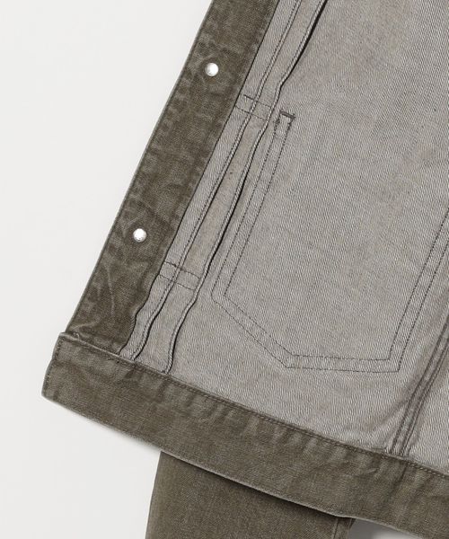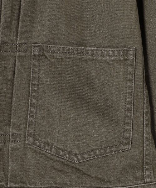 比翼仕立てや下側についたポケットデザインですっきりとした印象のデニムジャケット。