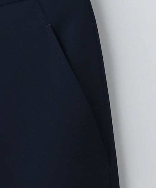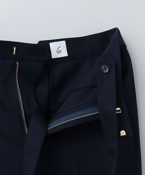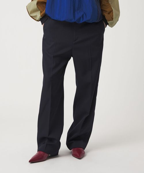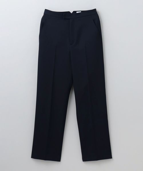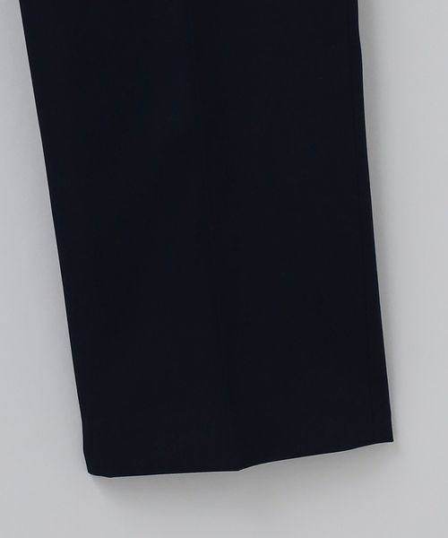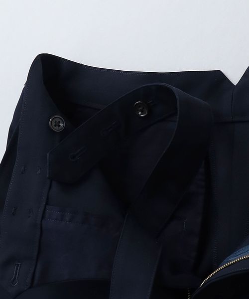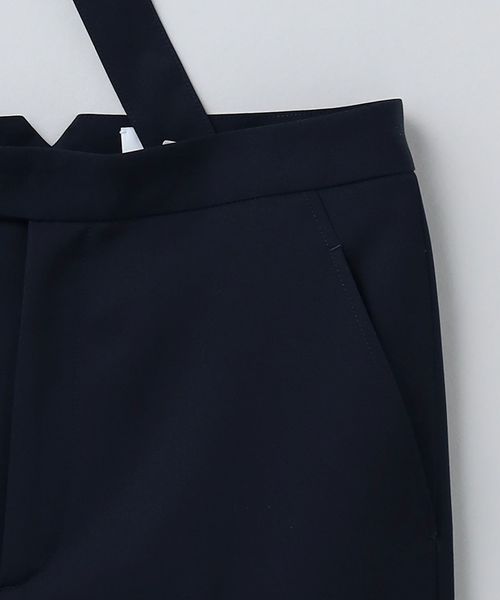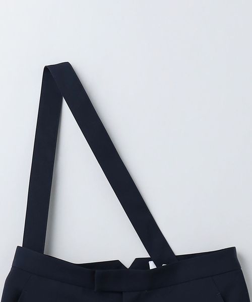 シックなネイビーカラーのきれいめなパンツに、ワンサスペンダー付きでモードな印象をプラスします。