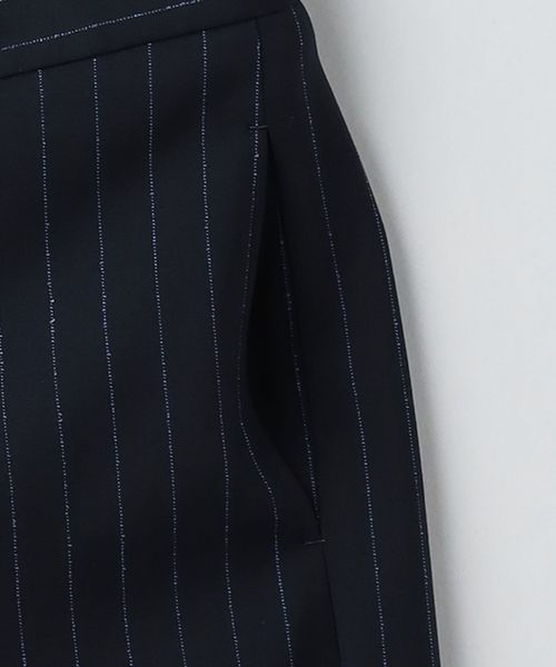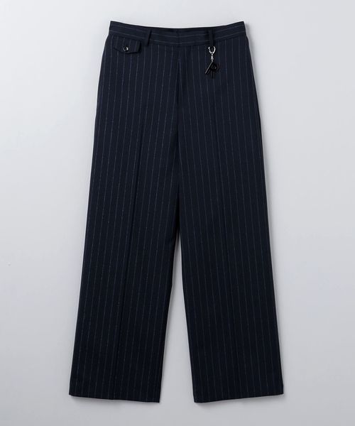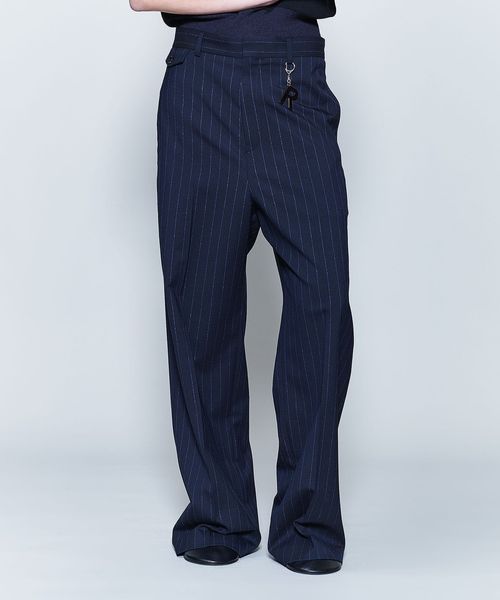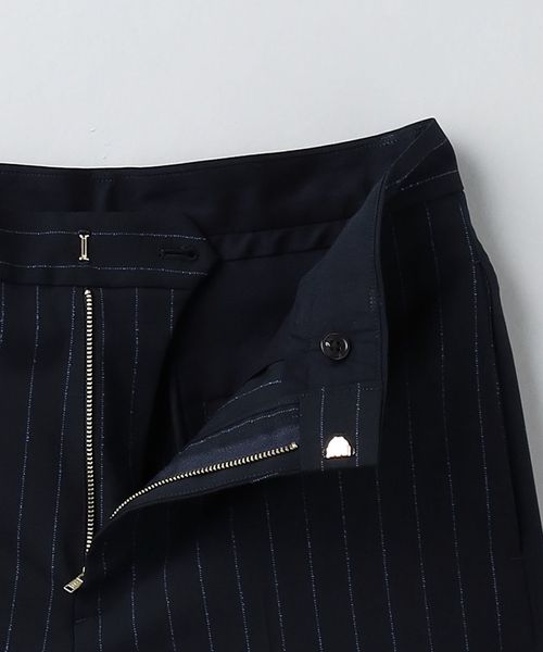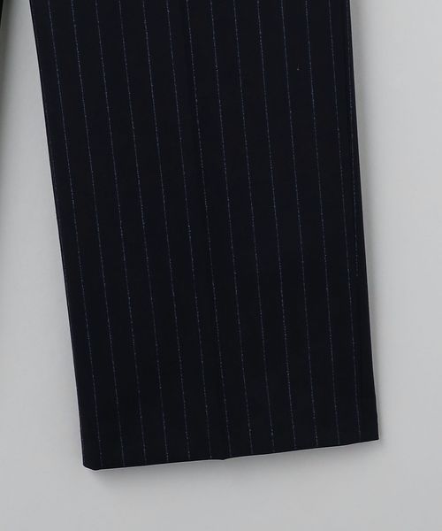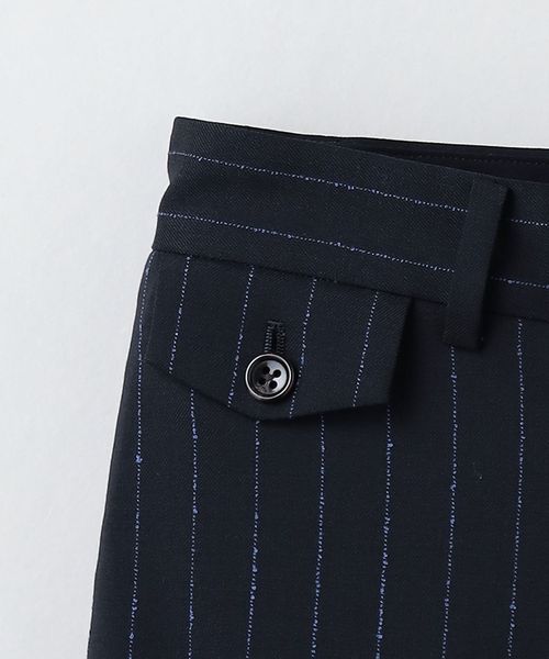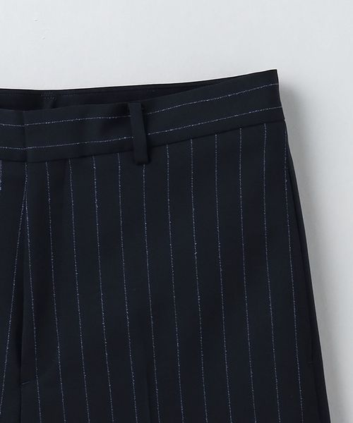 ストライプ部分にリング糸を入れ、生地感に表情を出したブルーのストライプが新鮮なパンツ。