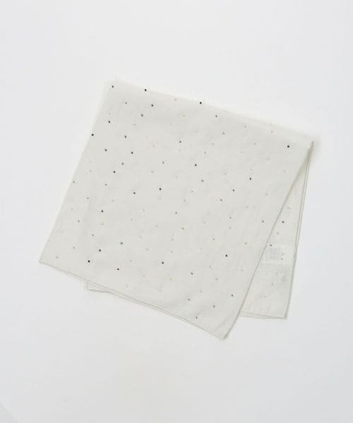 オフホワイトのやわらかい生地に散りばめられたような色とりどりの小粒ビーズをあしらったスカーフ。