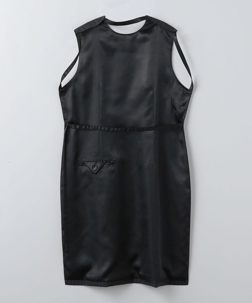 ネックとウエストのストラップをかけてレイヤードスタイルを楽しめるエプロン型のフロントワンピース。