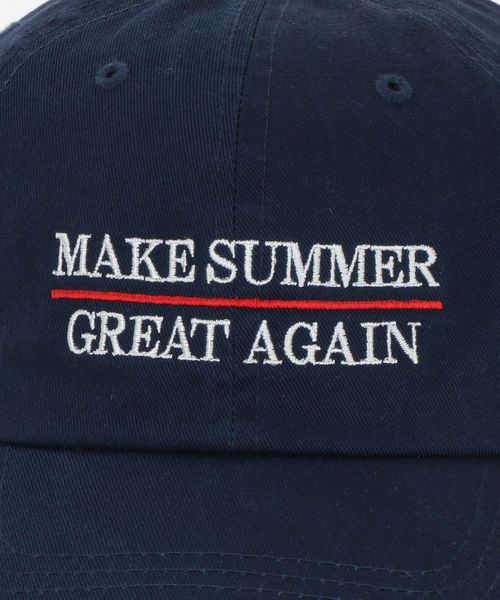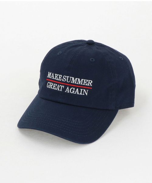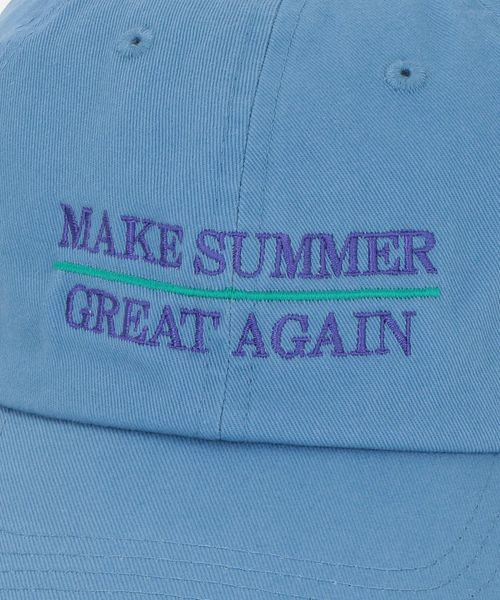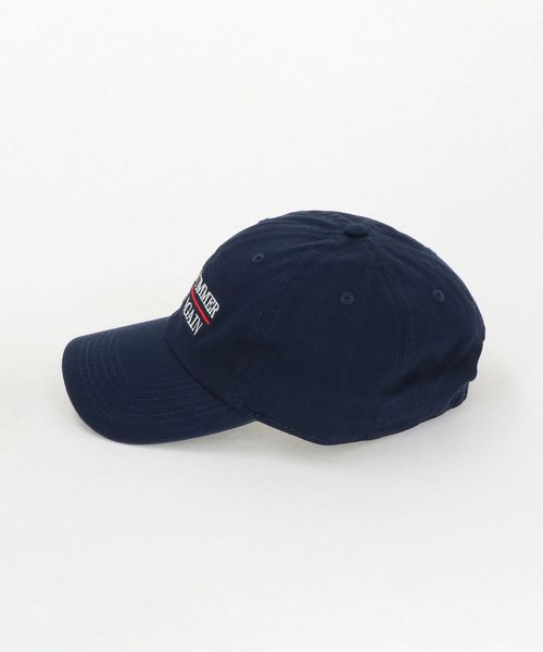1992年のムードを服として表現したコレクションより、フロントのアイロニカルなメッセージ刺繍が印象的なキャップ。