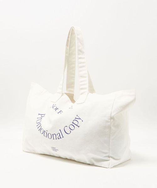 ブランドの定番メッセージ「Not For Sale Promotional Copy」をプリントしたビッグトートバッグ。