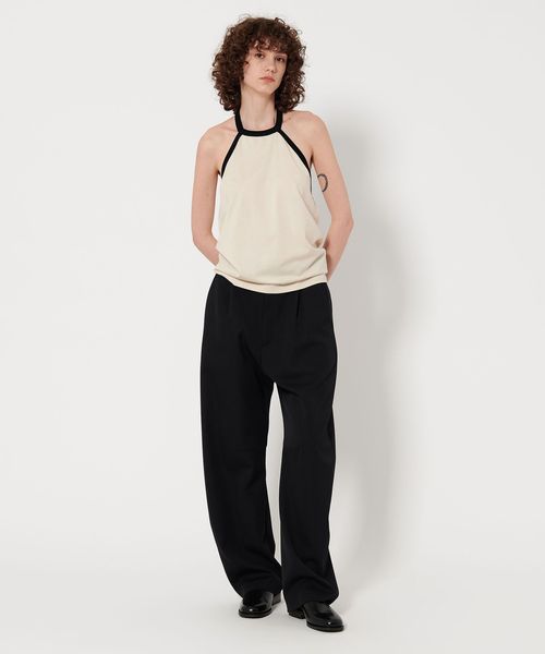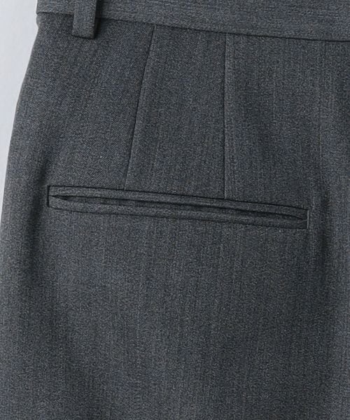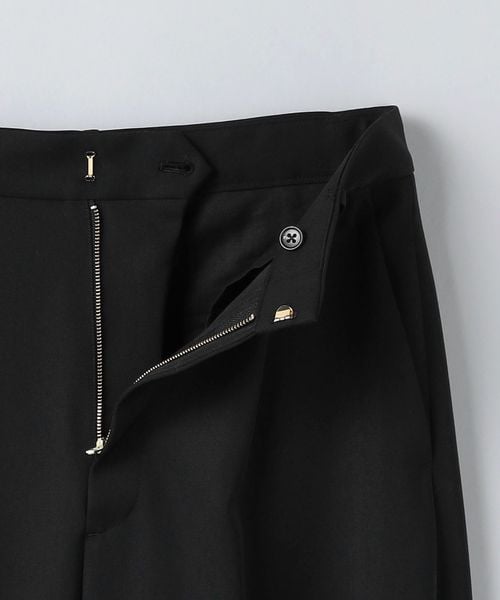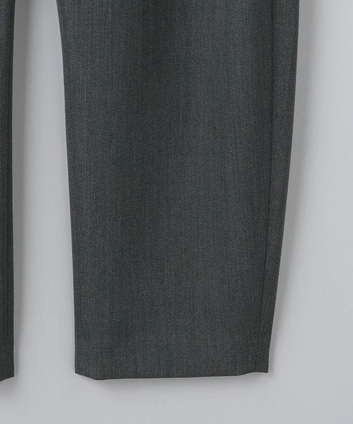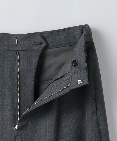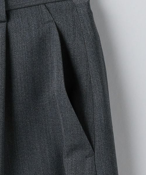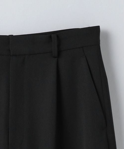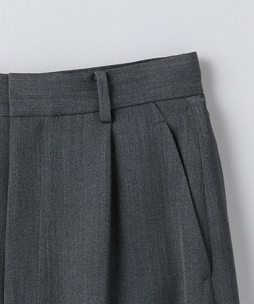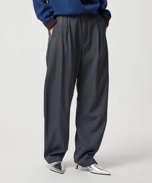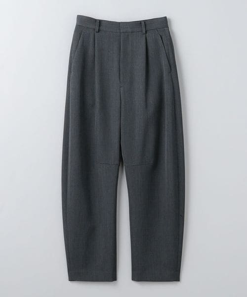 マニッシュな生地で仕立てたバレルシルエットのパンツ。