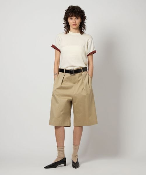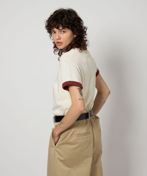 <6(ROKU)>オーガニックコットン カラー ショートスリーブ ニット プルオーバー