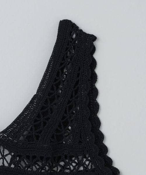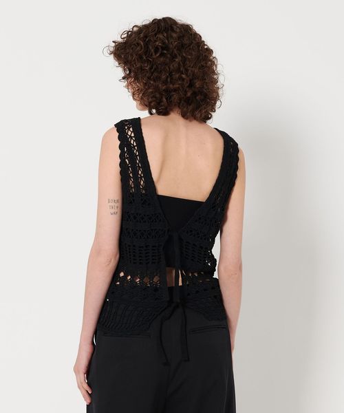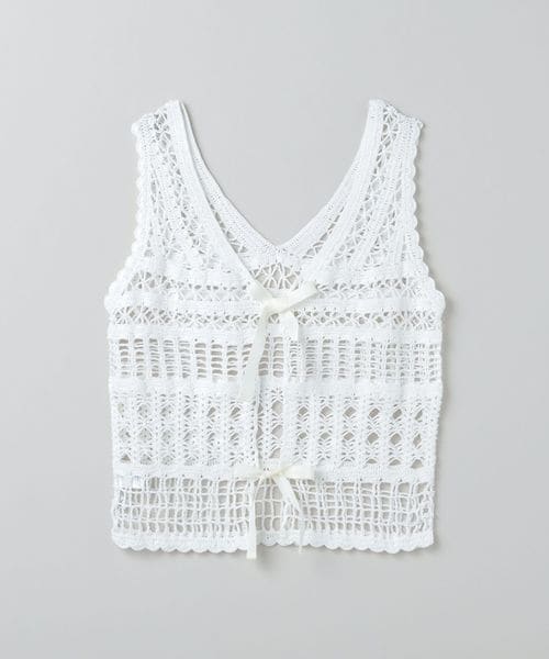 コットンポリエステルの糸で編み立てた、かぎ針編みのニットベスト。