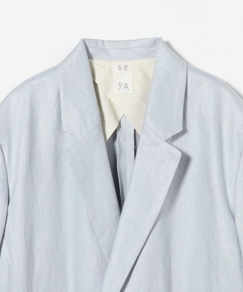 軽やかな麻生地で仕立てられたダブルブレストジャケット。