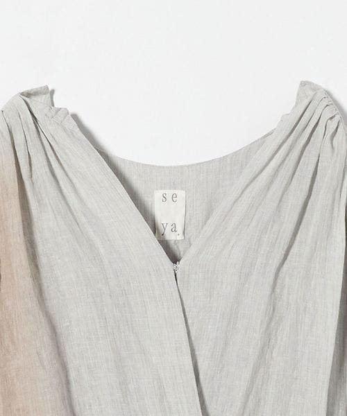 麻独特のフシのあるナチュラルな風合いと、リラクシーなカシュクールデザインが相まって、気負わないエフォートレスなスタイルを演出します。