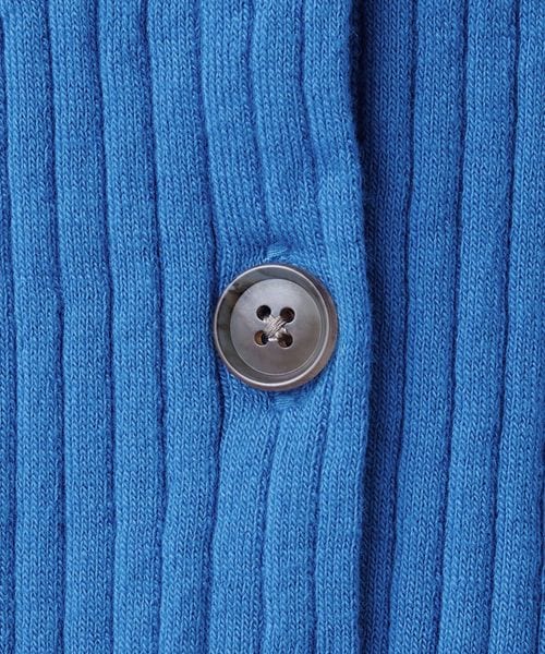 コットンナイロンブレンドの糸で編み立てたリブ編みニットカーディガン。