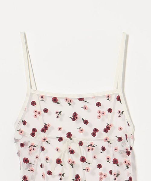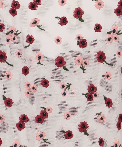 軽やかでやわらかい印象のシアーなチュールに花の刺繍をほどこしたチュニックワンピース。