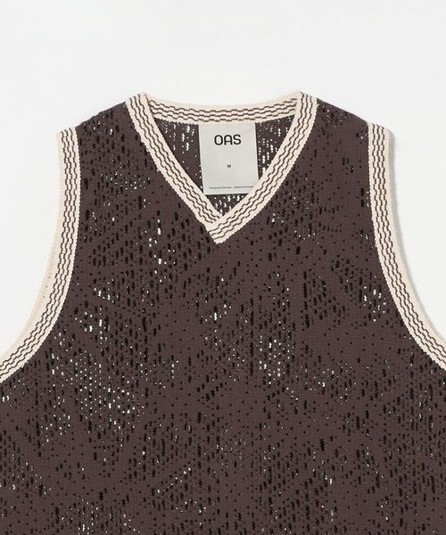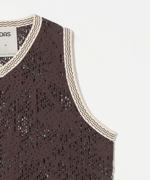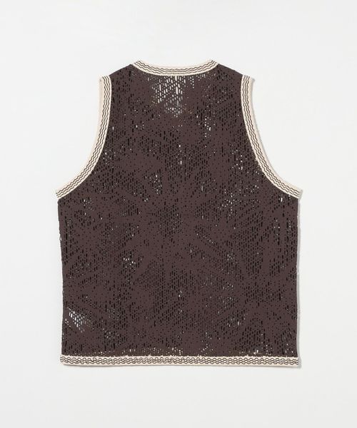 透かし模様のクロシェパターンが特徴的なVネックニットベスト。