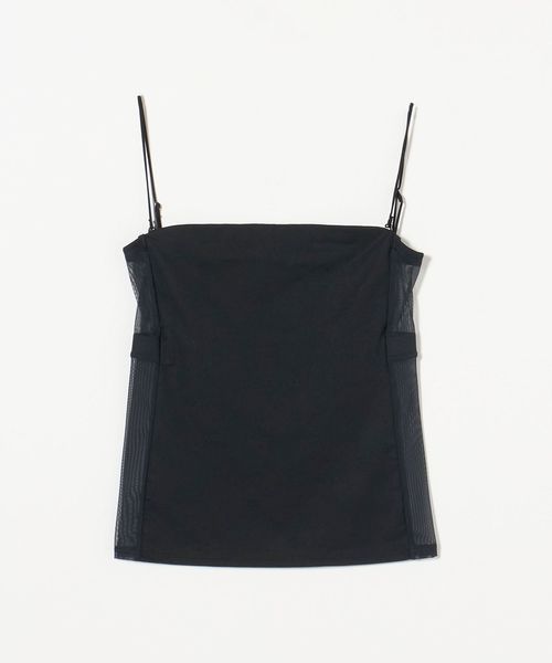 なめらかなスムース素材に背中部分はネット素材をアクセントに使用した、モードな雰囲気のあるキャミソール。