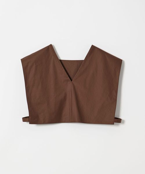 ケープ型のクロップド丈のトップスは、モードな印象のスクエアネックラインで、直線的なラインがデコルテを美しく見せてくれます。