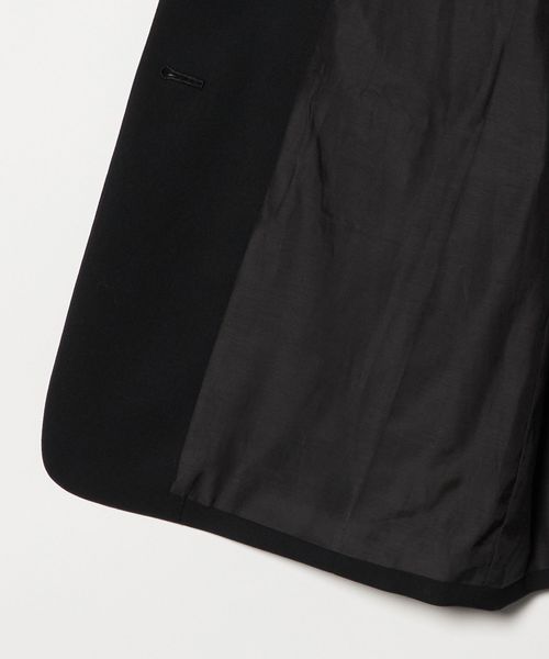 微光沢と適度なハリとコシを持ち合わせた毛織生地で仕立てたテーラードジャケット。