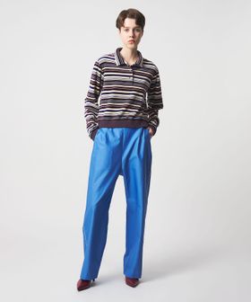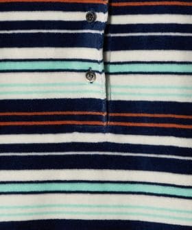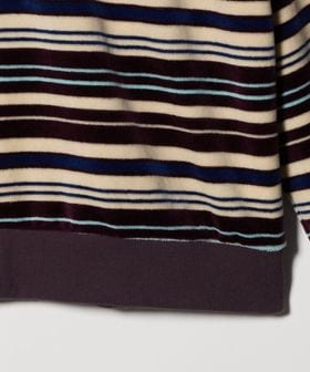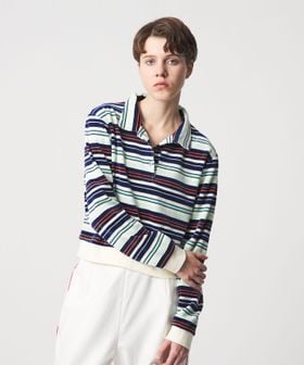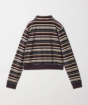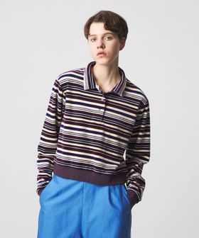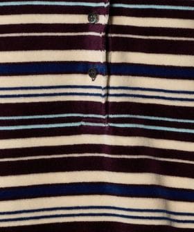 レトロシックなマルチボーダー柄のベロア生地を使用したポロシャツ。