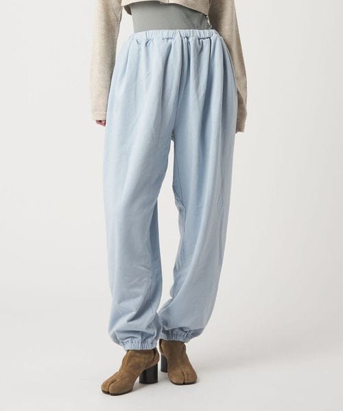 ギャザーを入れたボリュームのあるシルエットが特徴のスウェットイージーパンツ。