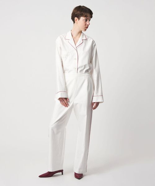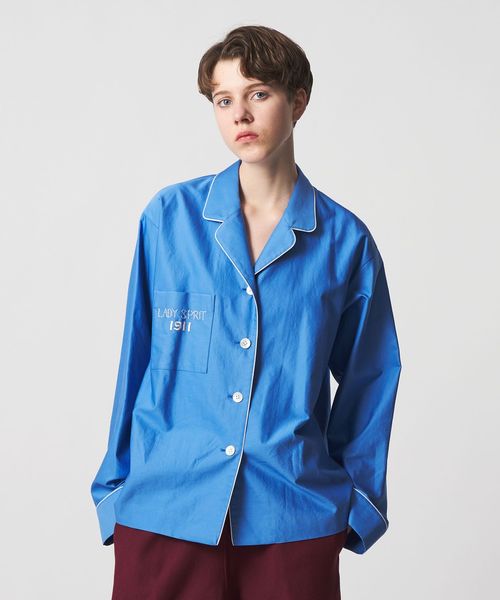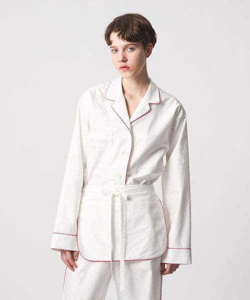 開襟やパインピングなど、ビンテージライクなパジャマデザインを取り入れたシャツ。