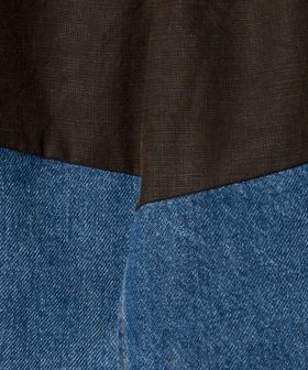 3年半前に発売したアーカイブをベースにデニムとブラウン生地の配色を上下逆転しました。