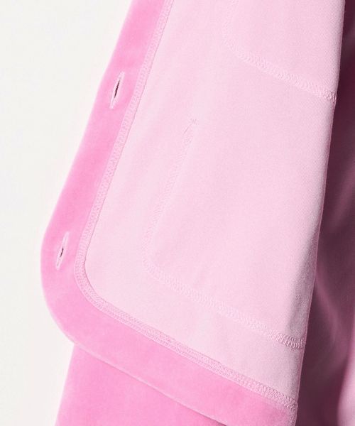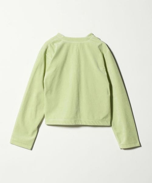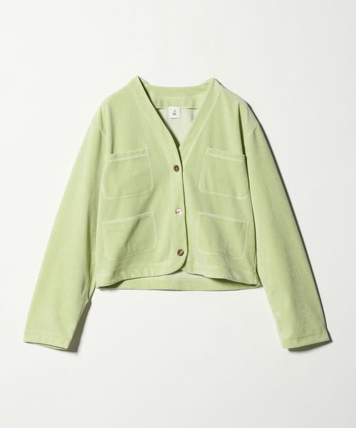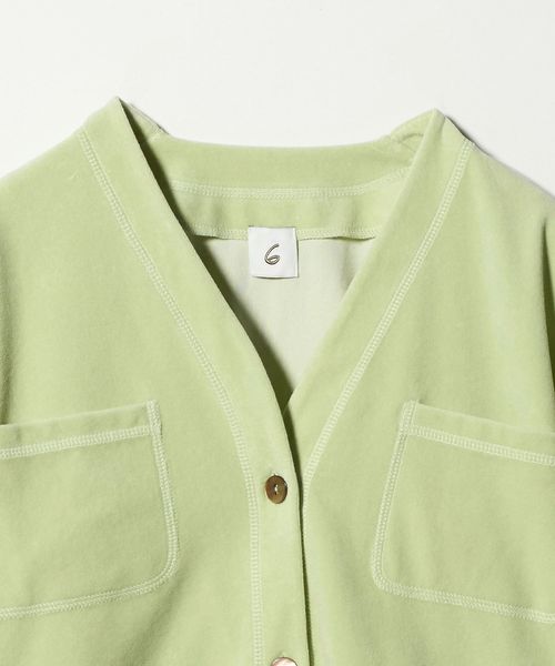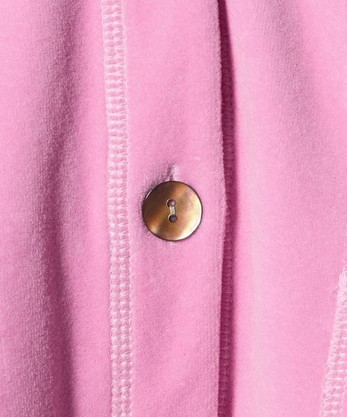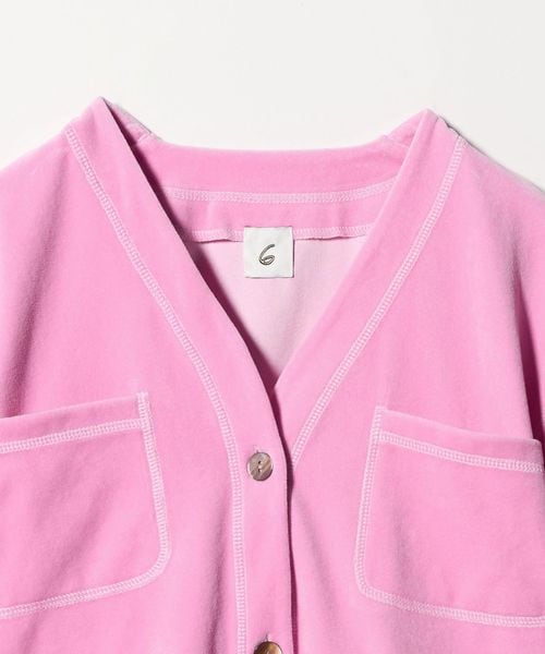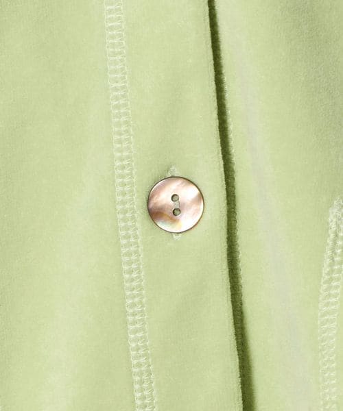 ベロアのやわらかい風合いとニュアンスカラーが着こなしにアクセントを添えるVネックカーディガン。
