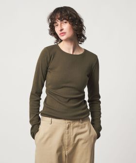 タイトすぎないシルエットで一枚着でもさまになり、インナーとして活躍します。