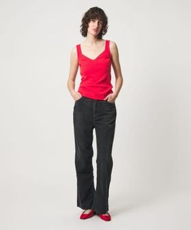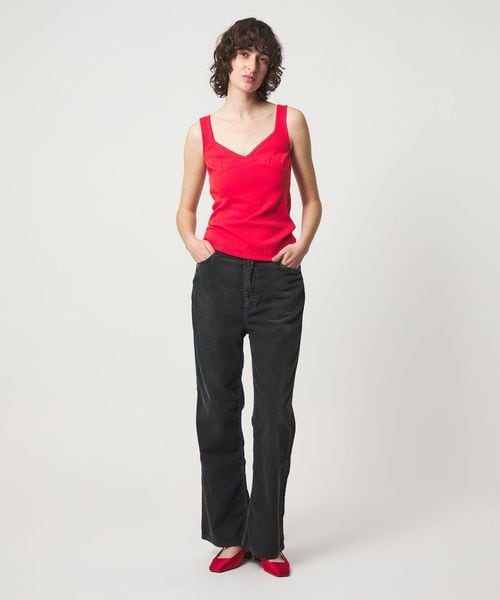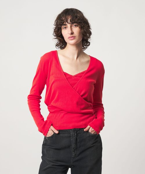 ニュアンスカラーでレトロシックな雰囲気に、Vネック部分のピコットがさりげなくガーリーな印象を演出します。