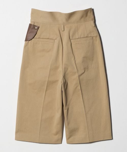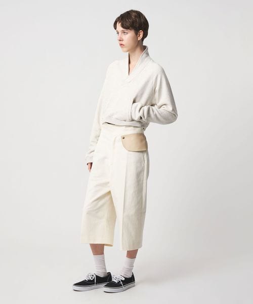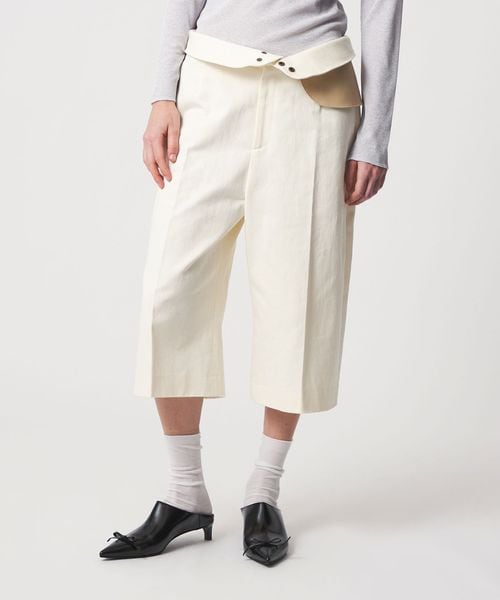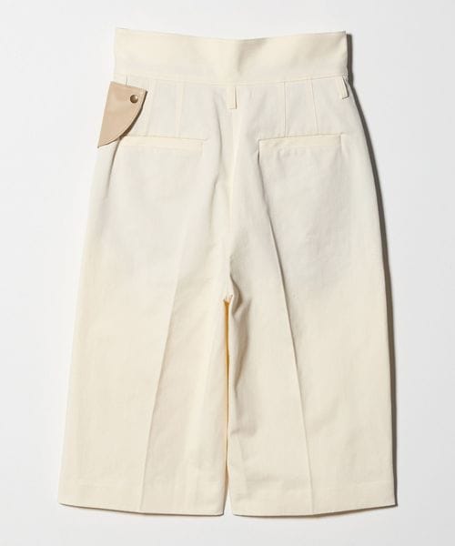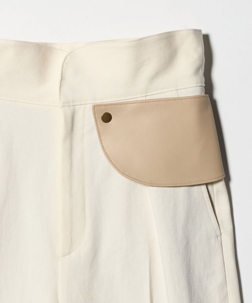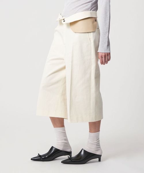 ハイウエストと取り外し可能なレザーミニポケットをアクセントに効かせた、クロップドパンツ。