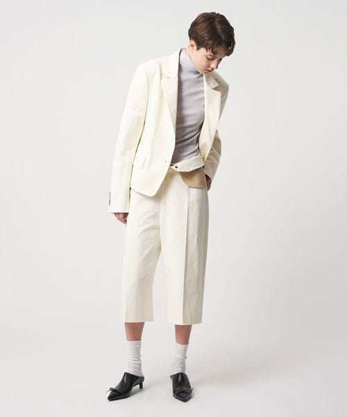 カジュアルなスウェットやニットとの合わせのほか、共地のジャケット(対象品番:86222000007)と合わせたセットアップスタイルも素敵です。