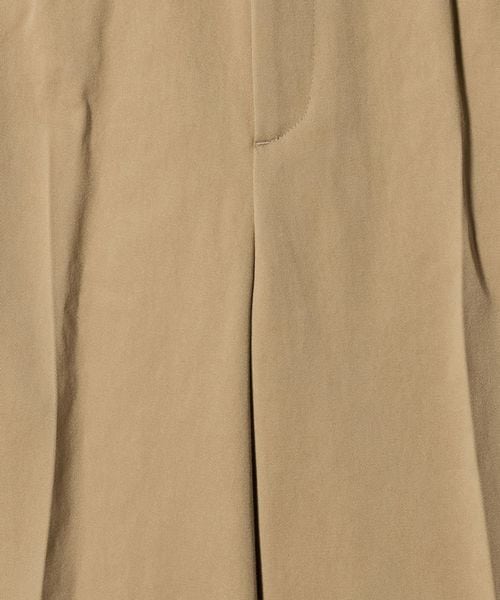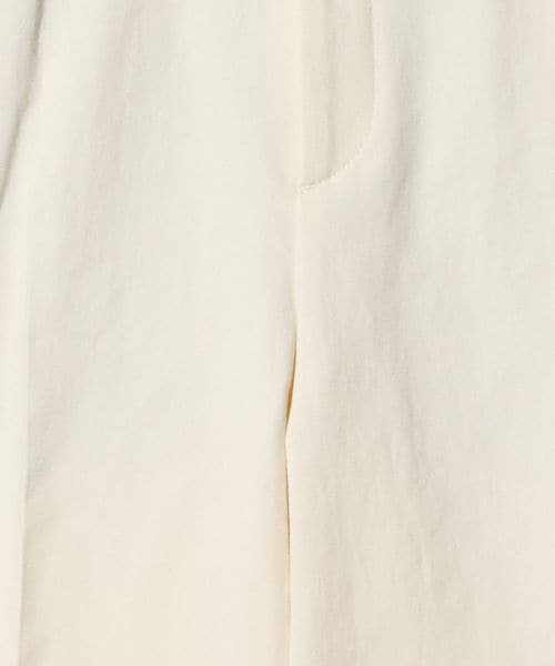 ストレートシルエットで渡り幅にゆとりはありながらも、ハイウエストやセンタープレスで縦長ラインを際立たせ、すっきりとし印象に。