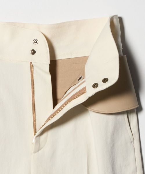 ショート丈のトップスとも相性のよいハイウエストデザインで、ウエスト部分を折り返してレイヤードした着こなしも新鮮です。