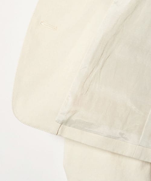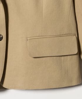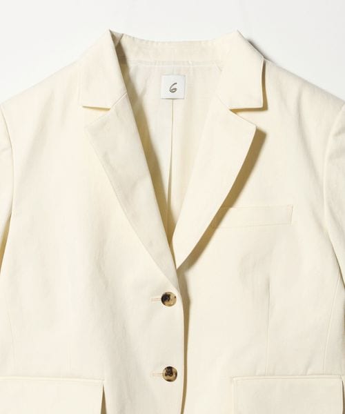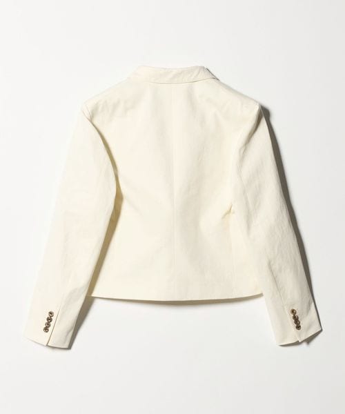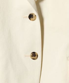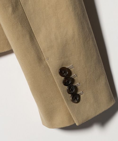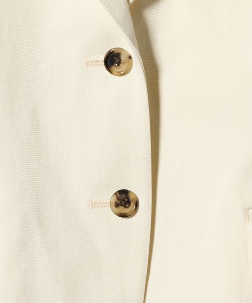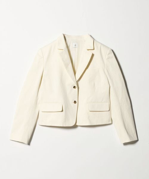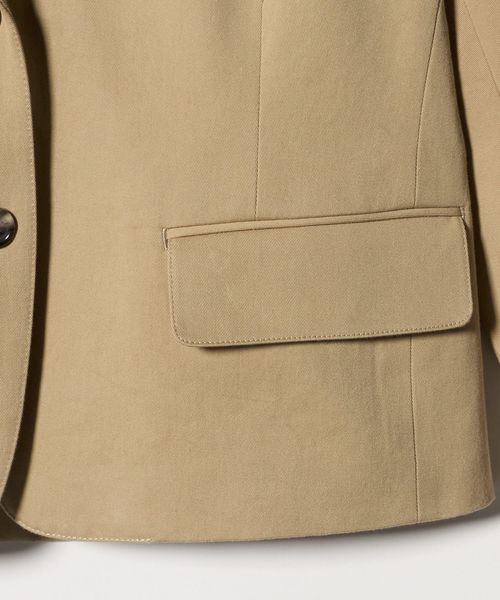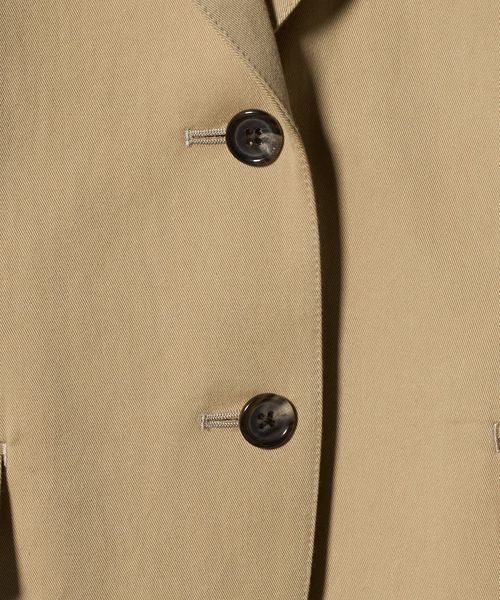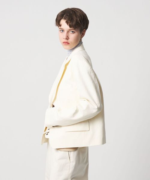 短めの着丈やウエストをさりげなく絞ったややコンパクトに見えるシルエットが新鮮なコットンジャケット。