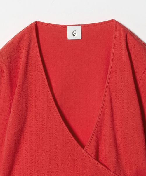 <6(ROKU)>パターンメッシュ カシュクール カーディガン