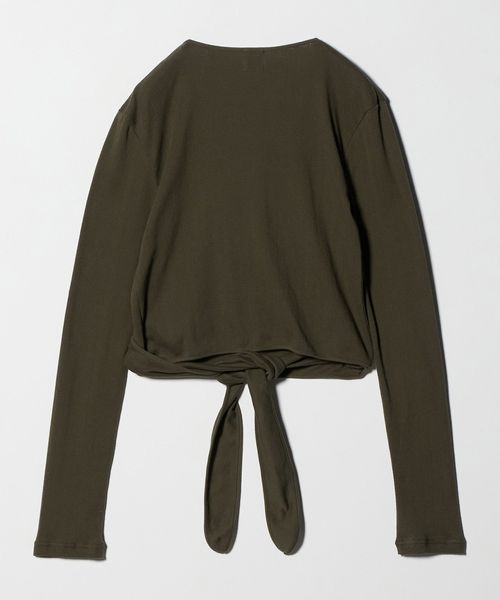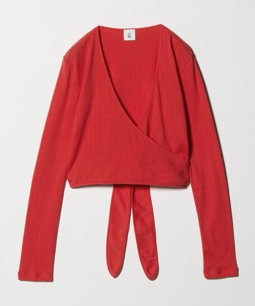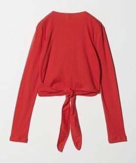 前身頃を左右で交差させ結ぶカシュクールデザインで、フェミニンな抜け感のあるスタイルを演出します。