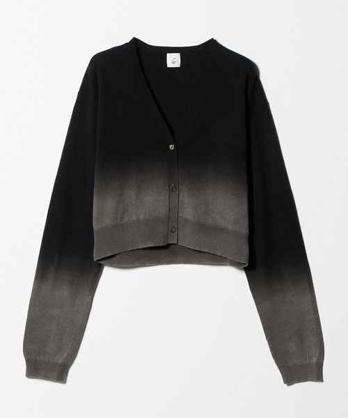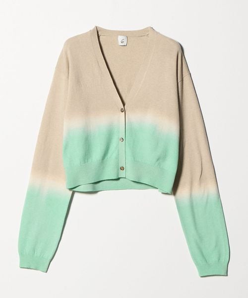 カラーと濃淡でグラデーションの段染めを施したカーディガン。