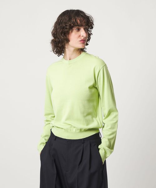 コットン糸で編み立てたさらりとしたタッチのハイゲージ クルーネックニット。