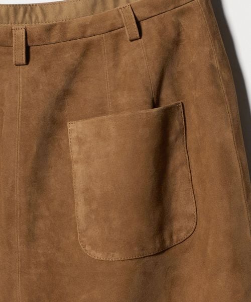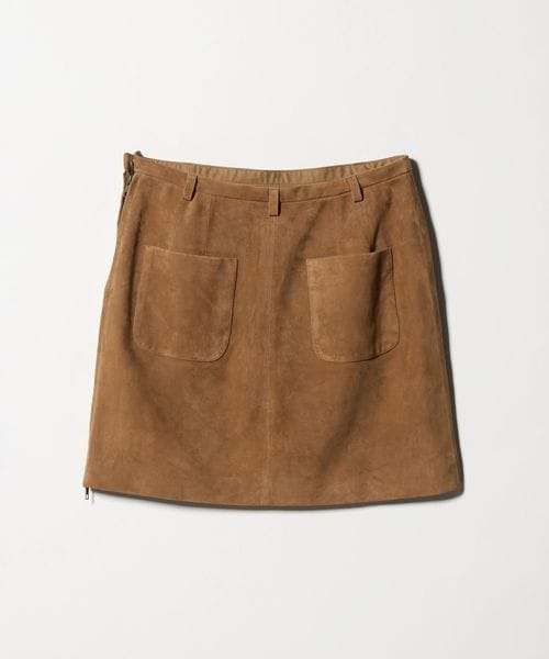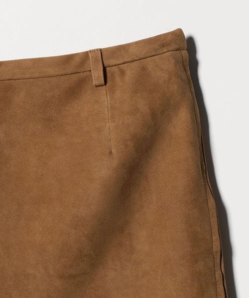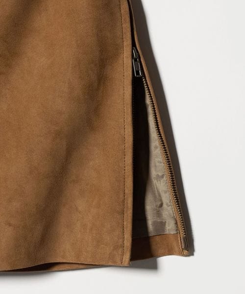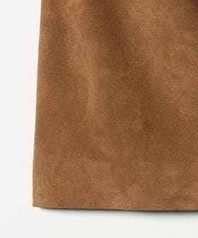 やぎ革スエードで仕立てたボックスシルエットのミニスカート。