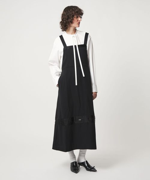 エプロンのようなデザインのワンピ―ス。