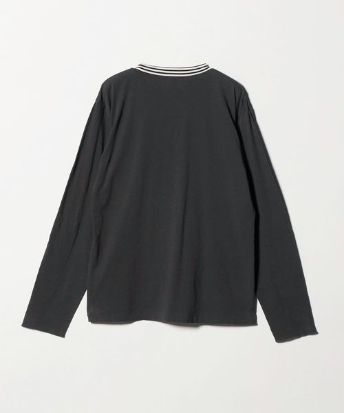 リンガー部分のボーダーラインや、同色のひじ当てがポイントとなり、カジュアルになりすぎない着映えする一枚です。