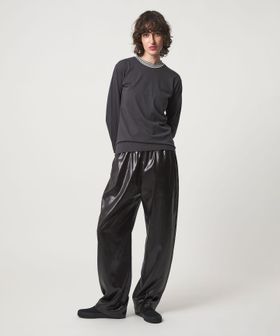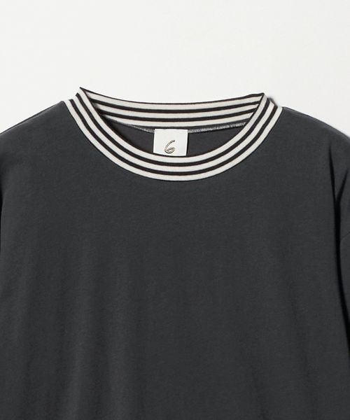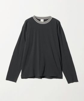 フィット感のあるボディは、コットンとカシミヤブレンドの細番手の糸で作られたややシアーなカットソー生地で、しなやかな風合いが特徴。