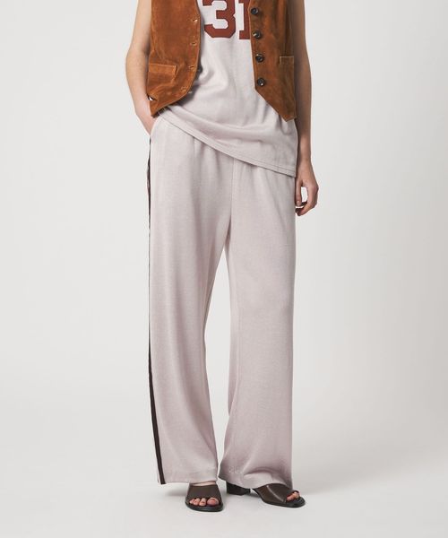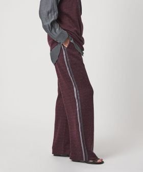 脇にスポーティなラインを配したカジュアルなアイテムも、落ち感のある生地ですっきりと見え、カジュアルになりすぎず大人らしいスタイルを演出します。